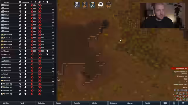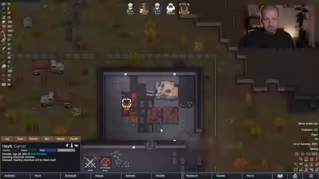 07:06:27Der Streamer wird in Rimworld mit einem unerwarteten Gegner konfrontiert, einem 'Den', den er zunächst nicht bemerkt hat. Er überlegt fieberhaft, wie er damit umgehen soll, und zieht in Betracht, eine Stahl-Spike-Falle zu platzieren oder eine Granate zu werfen. Bei dem Versuch, den Gegner mit einem Kolonisten zu locken, kommt es zu einer unglücklichen Verkettung von Ereignissen, bei der eine Mine explodiert und wertvoller Brennstoff verloren geht. Trotz des Missgeschicks sieht er es als Lehrgeld und ist froh, dass der Schaden begrenzt blieb. Ein Kolonist stirbt beinahe, überlebt aber knapp. Die Stimmung der Kolonisten ist weiterhin schlecht, und er versucht, die Ursachen dafür zu ergründen. Eine weitere Bedrohung in Form von 'Hunter-Drones' taucht auf, und er versucht, diese mithilfe der Fähigkeit eines Kolonisten, wilde Tiere zu zähmen, zu neutralisieren, indem er ein Eichhörnchen auf eine Mine zusteuern lässt. Der Plan geht nicht ganz auf, aber der Kolonist Denkman schießt überraschend gut und erledigt die Drohne. Die Verteidigung der Basis erweist sich als effektiver als erwartet. Er plant, weitere Verbesserungen an der Basis vorzunehmen, darunter den Bau einer Krankenstation und die Forschung von Prothesen, um verletzte Kolonisten zu versorgen.