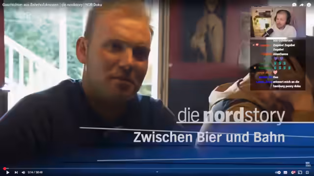 01:09:03Der Stream beginnt mit der Ankündigung des Doku Donnerstags, gefolgt von der Vorstellung der Dokumentation 'Geschichten aus Bahnhofskneipen'. Die Dokumentation 'Nordstory' wird gezeigt, die den Verfall und Abriss vieler historischer Bahnhöfe thematisiert, wobei persönliche Anekdoten über den Verlust des Bahnhofs in der eigenen Heimatstadt einfließen. Es wird die Bedeutung von Bahnhofskneipen als zweites Wohnzimmer für Stammgäste und Zufluchtsort für Reisende hervorgehoben, wobei die Unvorhersehbarkeit jedes Tages und die Vielfalt der Besucher betont werden. Die Tradition von Vereinen, die in Kneipen einkehren, insbesondere Fußballvereine, wird angesprochen, wobei der Streamer das Verschwinden dieser Vereinskneipen bedauert. Die Dokumentation zeigt Essie, die Wirtin der letzten Bahnhofskneipe zwischen Hamburg und Bremen in Lauenbrück, die sich auf einen Motorradclub vorbereitet und Paella für 20 Personen in der Bahnhofshalle zubereitet. Essie, eine in Hamburg geborene Spanierin, spricht über ihre Kochkünste, die sie von ihrer Mutter und Oma gelernt hat, und die Herausforderungen, in einer Raucherkneipe für eine geschlossene Gesellschaft zu kochen. Der Streamer kommentiert die Zubereitung der Paella und die Vorfreude auf den Besuch des Motorradclubs MC74 Husum.