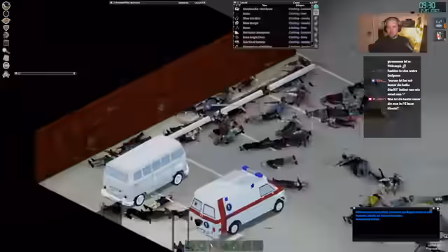 05:02:27Die Gruppe setzt ihren Weg fort, wobei die verbesserte Armprothese des Begleiters positiv hervorgehoben wird. Trotz anfänglicher Bedenken bezüglich einer Sirene scheint der Plan zur Fahrzeugbergung aufzugehen. Es wird ein Fahrzeug gefunden, das jedoch keinen Treibstoff hat. Während der Inspektion eines 'nackten' Zombies kommt es zu Problemen mit der Treffgenauigkeit. Die Gruppe plant, den Bereich um das Auto zu säubern, um das Abschleppen vorzubereiten. Es wird über das Einladen von Gegenständen und die Möglichkeit, zum Auto zu fahren, diskutiert. Plötzlich tauchen viele Zombies auf, was die Situation verkompliziert. Es stellt sich heraus, dass die Gegenstände im Wagen einer Person gehören, die der Streamer kennt. Nach dem Anschließen des Wagens und dem Abfangen von Zombies gelingt die Abfahrt, wobei ein anderes Fahrzeug zum Abschleppen benutzt wird. Die Fahrt verläuft holprig, aber erfolgreich, und es werden Überlegungen angestellt, wie man das hintere Fahrzeug als Katapult nutzen könnte. Am Ziel angekommen, werden Bretter eingeladen und die Schweißermaske ausgetauscht.