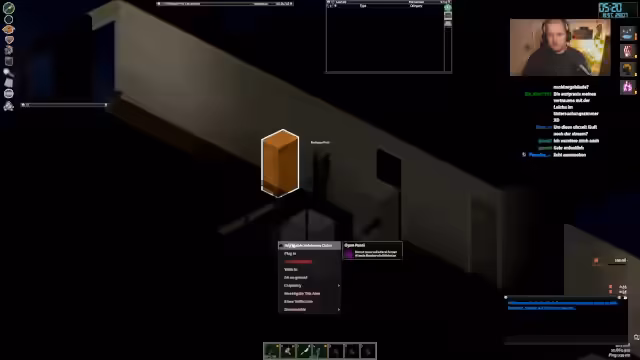 07:47:06Der Server startet neu, und der Streamer springt kurz zu Barocke. Er erwähnt, dass im Enklavenhotel fleißig amputiert wird und dass gestern der falsche Arm amputiert wurde. Er freut sich, dass er jetzt Prothesen herstellen kann. Nach dem Neustart testet er die neuen Mods, darunter Invisible Clothing. Er erklärt, dass er nur Leder-Patches unsichtbar gemacht hat, um Early-Game-Charaktere nicht zu verändern. Der Streamer freut sich über die Aufmerksamkeit, die Project Zomboid bekommt. Er hebt den Teppich hoch und hört Zombies. Er glaubt, dass der Teppich gut aussieht, wenn er ihn dort hinlegt. Er hört überall Zombies und befürchtet, dass etwas vor dem Haus los ist. Er will von Ahnen die Rechte holen, um auf seinem Claim Sachen machen zu können. Kurti ist nicht online, daher kann der Streamer den Rucksack nicht so schnell bekommen. Er schaut nach, ob er das Rezept hat, um den Rucksack selbst zu craften.