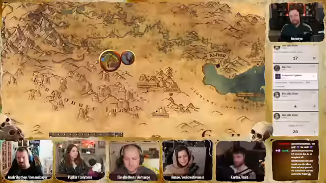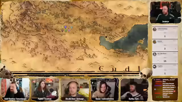 02:38:32Der Stream wird durch technische Unterbrechungen unterbrochen. Snow versucht, die Einstellungen der Foundry-Plattform zu ändern, aber es kommt zu Problemen mit der Steuerung. Ein Charakter, 'Partymarker', ist nicht korrekt in der Szene platziert und Snow muss die Einstellungen zurücksetzen. Während der Pause unterhalten sich die Teilnehmer über Merchandise-Artikel wie eine Katzendecke, die sehr beliebt ist. Snow erklärt auch, dass die Aufzeichnungen der Abenteuer regelmäßig auf YouTube hochgeladen werden, möglicherweise in zwei Teilen, da die Videos sehr lang sind. Der Stream wird schließlich unterbrochen.