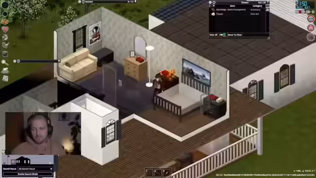 02:44:53Nach der erfolgreichen Erkundung beschließt der Streamer, das entdeckte Haus als dauerhafte Basis auszubauen. Es gibt Pläne, die Vorderseite zu verbarrikadieren, einen zweiten Zaun als zusätzliche Sicherheitsmaßnahme um die Ecken zu bauen und eine 'Sicherheitsschleuse' einzurichten. Er findet das Haus sehr passend und gemütlich, besonders wegen der Kinderzeichnungen an den Wänden.