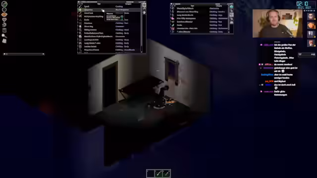 04:01:40Nach einem gefährlichen Vorstoß in das Nachbarhaus, in dem Zigaretten gefunden werden, geht es zurück zum Ausgangshaus. Der Charakter ist erschöpft und müde. Der Streamer sammelt weiteres Loot, wie einen Küchenmesser, und bereitet sich auf den nächsten Tag vor. Die Priorität liegt jetzt darauf, den Character auszuruhen und weitere Gegenstände zu verarbeiten, wie zum Beispiel die Erstellung von Rucksäcken aus Vorhängen.