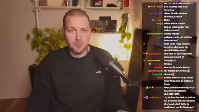 02:23:19Nach einer kurzen Pause startet der Streamer in ein Spiel von Project Zomboid mit speziell angepassten Einstellungen. Um die Überlebenswahrscheinlichkeit zu erhöhen, hat er eine eigenentwickelte Mod in Auftrag gegeben, die das Herstellen von Kräuterzigaretten ermöglicht. Diese Mod namens 'DIY Herbal Smokes' soll die Spielbalance zugunsten des Spielers verschieben, da Zigaretten in den Schwierigkeitsstufen eine entscheidende Rolle für die mentale Stabilität spielen. Er nutzt diese Mod, um einen bestehenden Spielstand weiter zu spielen und seine Überlebensstrategien unter Beweis zu stellen.