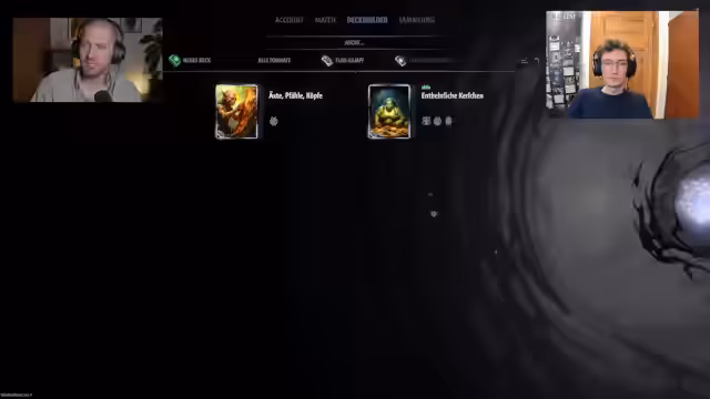 05:13:24Das derzeitige Spielformat, das Fluxkampfformat, erlaubt den Bau von 50-Karten-Decks mit maximal zwei Kopien pro Karte. Zukünftig soll ein weiteres Format, das Evolving Format, eingeführt werden, bei dem nur Karten der eigenen Festung oder Helden erlaubt sind. Szenarien sind vorgefertigte Decks, die als Einführung in das Spiel dienen. Die Deck-Erstellung wird durch Mechaniken wie das Evo-System motivierend gestaltet, da Karten sich verändern können und jeder Spielstil die Entwicklung einer Karte beeinflussen kann. Die Teamgröße liegt bei 16-17 Personen, inklusive eines erweiterten Art-Teams.