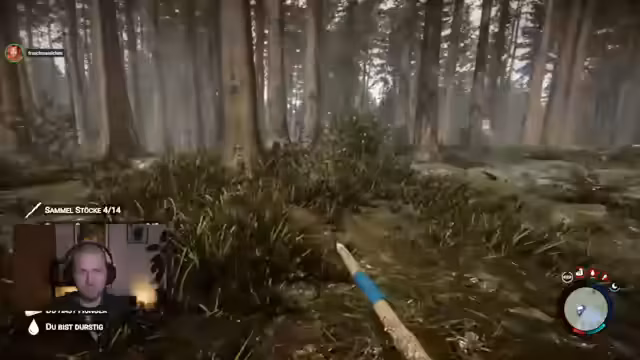 05:17:35Nach der erfolgreichen Jagd beschäftigt sich der Streamer mit dem Ausbau seiner Basis. Er bemängelt, dass die Leichenfeuer leer sind und animiert seine Begleiter, das Feuer nachzulegen, um Fleisch zu rösten. Da dieses noch nicht trocken ist, beschließt er, seine Ausrüstung zu füllen und auf das Trocknen des Fleisches zu warten, bevor die Expedition in den Wald beginnt. Auch das Thema übermäßiger Hunger wird angesprochen.