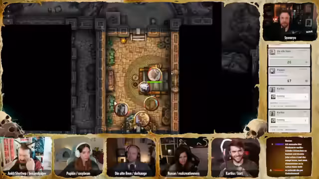 00:26:52Nach den anfänglichen Diskussionen beginnt der Streamer, die technischen Aspekte für die Pen & Paper Session zu regeln, indem er die Kopfhörer aufsetzt und die anderen Spieler anruft. Es wird erwähnt, dass sich einige Spieler möglicherweise verspäten könnten. Es gibt eine kurze Diskussion über eine Anfänger-Magic-Gruppe, und der Streamer äußert sich gespannt darauf. Die Spieler treffen nach und nach im Chat ein, und es wird beschlossen, dass ein Spieler ohne Kamera teilnehmen wird, wobei ein Katzenbild als Vertretung dient. Die Gruppe tauscht sich über ihre Level-Ups aus. Der Streamer erklärt, dass er die meisten Level-Ups bereits eingetragen hat, aber noch einige Details besprochen werden müssen. Insbesondere wird die Anpassung der Warlock-Klasse thematisiert, da sich die Pakt-Art geändert hat und nun nur noch eine Invocation anstelle eines Pakts gewählt wird. Papkin erhält Expertise für Level 6, und es wird überlegt, welche Skills verbessert werden sollen. Hauke erhält einen neuen Level-3-Spell-Slot und ein Feature namens Spirit Session, dessen Details noch geklärt werden müssen. Die Spieler tauschen sich über die neuen Fähigkeiten aus und stellen sicher, dass alle Charaktere korrekt aktualisiert sind.