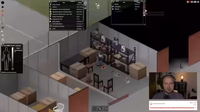 04:02:48Der Streamer erkundet die Umgebung, sammelt Ressourcen und bereitet sich auf die bevorstehende Apokalypse vor. Er findet einen Rucksack und packt wertvolle Gegenstände wie ein Radio, Werkzeuge wie einen Whetstone und eine Feldbett ein. Dabei gibt es mehrere humorvolle Anekdoten, wie zum Beispiel die Diskussion um den Geschmack von Maggi oder die Beobachtung, wie seine Frau das Streamen aufnimmt.