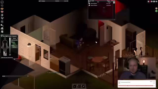 05:34:39Der Streamer begibt sich auf eine gefährliche Straße und muss aufpassen, nicht von der Armee angegriffen zu werden. Er entkommt einem Irren und sucht nach einem Autoschlüssel, um im Auto schlafen zu können. Da dies nicht gelingt, setzt er seine Suche fort und findet schließlich eine Bar mit einem angrenzenden Haus. Dort hofft er, einen Schlafplatz zu finden. Das Haus ist jedoch verwüstet und ungesichert. Trotzdem betritt der Streamer das Haus in der Hoffnung, etwas Nützliches zu finden und zur Ruhe zu kommen. Er bedient sich am Kühlschrank und untersucht das Haus nach medizinischem Material und anderen nützlichen Gegenständen. Dabei entdeckt er einen Werkzeugtisch, kann ihn aber aufgrund von Hindernissen nicht nutzen. Die Suche nach einem sicheren Schlafplatz geht weiter.