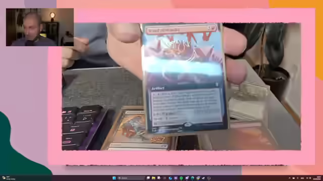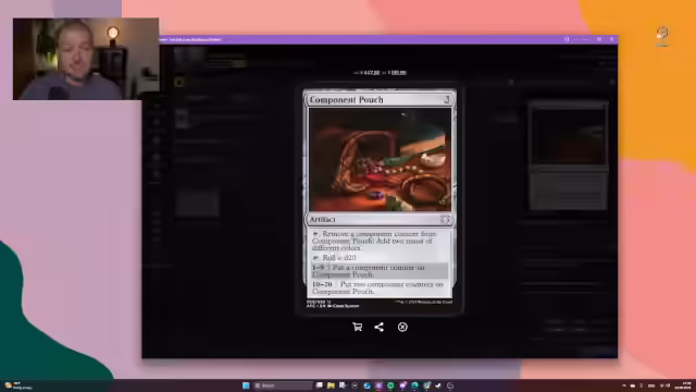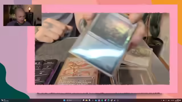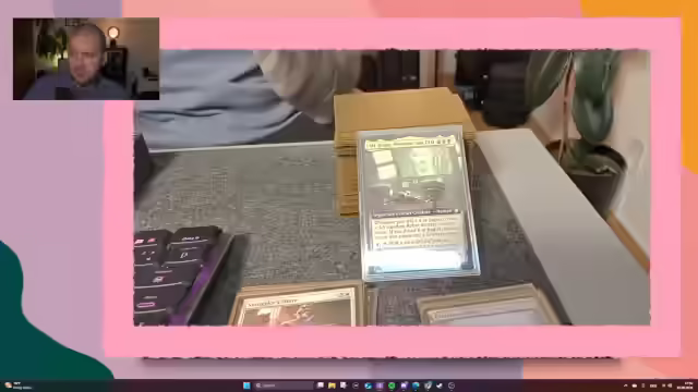 01:17:09Handarbeiter of Wills verleiht einer legendären Kreatur Wachsamkeit, Lebensverknüpfung und Unzerstörbarkeit, was in Kombination mit dem Commander sehr stark ist. Ancient Copper Dragon erzeugt Treasure-Token basierend auf einem D20-Wurf. Alchemist Talent erzeugt Treasure-Token und verursacht Schaden, wenn Mana von einem Treasure ausgegeben wird. Lightning Greaves verleiht einer Kreatur Verhüllung. Clown Car ist eine Baitkarte, die Counterspells provoziert. Saw in Half zerstört eine Kreatur und erzeugt zwei Kopien mit halber Stärke und Widerstandskraft, was ETB-Effekte doppelt triggert. Six-Sided Die ist ein Instant, das das Würfeln ermöglicht. Der Streamer zeigt eine Proxy-Karte und erklärt, dass Proxies mit einem M gekennzeichnet sind. Bobblehead lässt einen Würfel würfeln. Der Streamer hat gerade eine Getränkelieferung bekommen. Der Streamer präsentiert Vault of the Archangel, um Gegner abzuschrecken. Myriad Landscape ist ein Standardland, um Länder rauszukriegen.