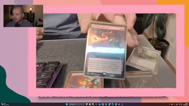 01:24:54Der Streamer erklärt, dass er eine Getränkelieferung bekommen hat. Der Streamer präsentiert Vault of the Archangel, um Gegner abzuschrecken. Myriad Landscape ist ein Standardland, um Länder rauszukriegen. Deadbeat Attendant öffnet eine Attraction beim Betreten des Feldes. Vault of the Archangel verleiht Kreaturen Death Touch und Life Link. Strength Testing Hammer erlaubt das Würfeln und Kartenziehen. Delina Wildmage erzeugt getappte und angreifende Token-Kopien und Contraband Livestock exiliert Kreaturen und lässt einen D20 würfeln. Die Karte, die Kreaturen mit +1/+1-Marken versorgt, ist ein Gamechanger. Attractions ermöglichen das Würfeln. Slight Malfunction zerstört Artefakte und verursacht Schaden basierend auf einem Würfelwurf. Reckless Endeavor verursacht Schaden und erzeugt Treasure-Token basierend auf Würfelwürfen. Lightfoot Rogue und Will, Blade of Frontiers verbessern Würfelwürfe. Maelstrom of the Spirit Dragon sucht nach einem Drachen, um Gegner einzuschüchtern. Ors of Guildgate, Thriving Heath und Command Tower sind Standardländer.