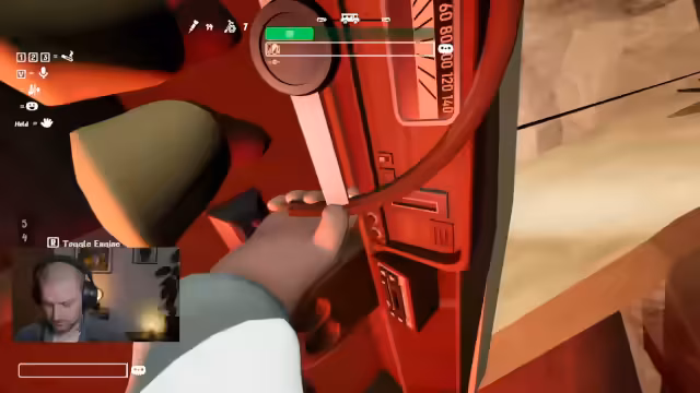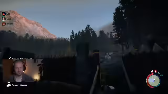 01:03:40Der Zomboid-Stream endet vorzeitig, um in ein anderes Koop-Spiel namens 'Bums' zu wechseln. Die Gruppe, bestehend aus Streamer, Lisa und Ness, startet ein RV, um gemeinsam zu spielen. Die ersten Minuten sind geprägt von technischen Schwierigkeiten und Missverständnissen bei der Steuerung des Fahrzeugs. Dies führt zu einem humorvollen, aber chaotischen Start, bei dem Lisa aus dem RV fällt und der Streamer bei einem Rettungsversuch stirbt.
