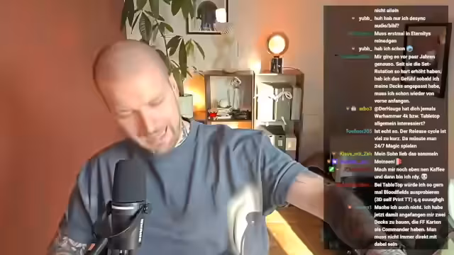 00:20:00Der Streamer begrüßt die Zuschauer und erwähnt seine angeschlagenen Stimme und fehlenden Drive. Er kündigt die Verschiebung des Pen & Paper-Formats 'Satz Doom' vom Freitag auf den Montag an, um den veränderten Schedule von Ben anzupassen. Der 'Magic Monday' wird beibehalten und soll verlässlicher werden. Streamer ist seit Montag krank geworden, was seine Produktivität beeinträchtigt.