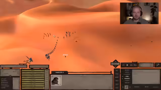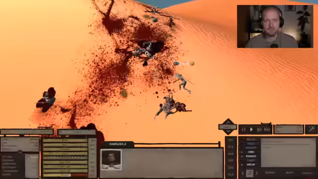 01:16:57Der Stream startet mit der Einführung des Spiels Kenshi, einer brutalen Survival-Simulation in einer zerstörten Welt. Der Charakter beginnt als Wanderer mit nur einem Arm und zeigt typische Herausforderungen wie Angriffe durch Fanatiker, Interaktionen mit Aliens und das Streben nach einem Drogenimperium. Gleichzeitig gibt es technische Schwierigkeiten mit der Bildschirmeinstellung, die jedoch überwunden werden, um mit dem Spiel fortzufahren.