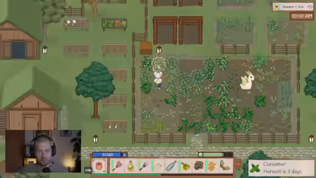 01:29:48Mit dem Eintritt des Sommers ändert sich die Anbaumöglichkeiten auf der Farm. Der Streamer kann nun Sommernahrung anbauen und stellt fest, dass Lavendel sowohl für die Quest als auch für den Verkauf wichtig ist. Er bemerkt, dass die Gesellschaft die Landwirte nicht fair behandelt und mehr Unterstützung verdient. Er beschäftigt sich mit dem Kompostsystem und stellt fest, dass er Plant Debris benötigt, um die Komposter zu füllen.