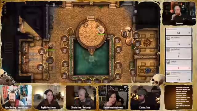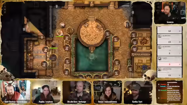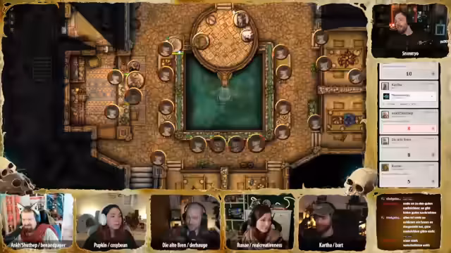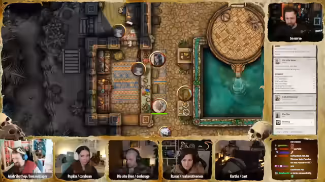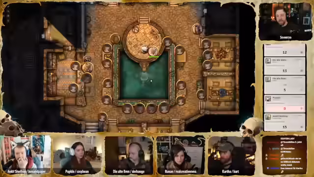 00:43:22Während Hügelchen sich auf dem Rückweg nach Glimmerscale befindet, versammeln die Abenteurer wichtige Personen der Gemeinschaft in der Krokodilsklippe, um die bedrohliche Situation zu besprechen. Es wird ein Zeitsprung zum frühen Abend gemacht, um die Atmosphäre zu verdichten. Unter den Anwesenden sind bekannte Gesichter wie Stillhand, der Einarmige, Finken, Brini, Maladius Vashai und Pip, Brinis Sohn. Auch Opa Gregson, Lea Cinder Eyes (die Loremeisterin), Unada (die Älteste) und zwei Vertreter des Zwift Neblin-Vereins sind anwesend. Es wird diskutiert, ob weitere Personen wie der Händler Majin Ibn Abu oder die Betreiberin des Badehauses eingeladen werden sollten, um ein breiteres Spektrum der Bevölkerung zu erreichen und Gerüchte zu kontrollieren. Die Badehausbesitzerin und ein Hafentyp werden schließlich hinzugefügt, um die 'Unterschicht' zu repräsentieren. Die Stimmung ist erwartungsvoll, besorgt und hoffnungsvoll zugleich, während kleine Gespräche entstehen und sich alle auf die bevorstehende Ansprache vorbereiten. Cartha, der die Zusammenfassung halten soll, ist nervös und versucht, sich den Blicken zu entziehen, während Ank, die von Anfang an skeptisch war, schweigend an der Theke sitzt und ihren Kaktusschnaps trinkt.
