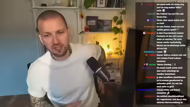 00:52:59Es folgt eine Diskussion über das, wie Menschen sich durch Hobbies und Konsummuster identifizieren. Streamer stellt die Frage, ab wann man als Gamer oder Kiffer bezeichnet werden kann und was diese Begriffe für die eigene Identität bedeuten. Er vergleicht dies mit stärker gesellschaftlich verankerten Gruppenidentitäten in Japan, wie dem Fankult. Es wird betont, dass Gruppenbildung ein menschliches Grundbedürfnis ist und dass Gemeinsamkeiten, selbst in Nischen-Hobbies wie Star Trek, eine Basis für Akzeptanz und Verständlichkeit schaffen können.