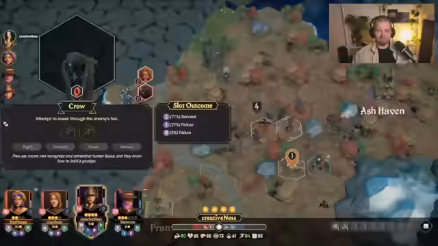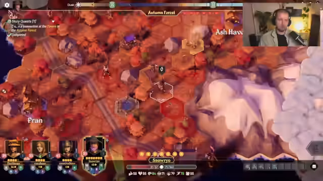 04:00:01Das Movement-System des Spiels wird erläutert. Die Bewegungspunkte werden jede Runde neu basierend auf Wetter und Glück gewürfelt, wobei der eigene Movement-Wert einen Einfluss hat. Ein permanenter Bewegungsboni von +2 wird durch die Absolvierung einer Quest an einem Heiligtum der Eile erzielt. Der Streamer betont die Wichtigkeit von hohem Movement für Tanks, um vor den Gegnern zu bleiben. Die Gruppe plant ihre Route und versucht, mehrere Quests effizient zu absolvieren, wobei Transportmittel wie Portale strategisch eingesetzt werden.