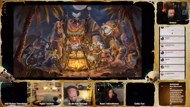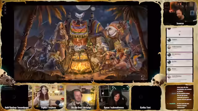 Die Veranstaltung begann mit einer spontan angesetzten Gesprächsrunde, nachdem das anberaumte Pen & Paper aufgrund von Ausfällen der Teilnehmer nicht stattfinden konnte. Hierbei wurde ein eigenes Magic: The Gathering-Deck präsentiert, das speziell für die Gruppe entwickelt wurde und deren Charakteren thematisch angepasst ist. Zudem wurden persönliche Themen wie der bevorstehende Umzug in ein Haus in Japan und die damit verbundenen Herausforderungen diskutiert. Den Abschluss der Veranstaltung bildete das gemeinsame Spielen des kooperiven Strategiespiels 'For the King II', bei dem die Teilnehmer ihre Charaktere strategisch einsetzten und taktische Entscheidungen trafen.