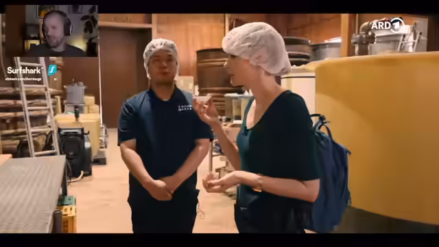 04:40:01In der Geburtsstadt der japanischen Sojasauce, Yuasa, besucht der Streamer eine traditionelle Sojasauce-Brauerei. Der Prozess der Sojasauceherstellung wird erklärt: Sojabohnen werden gekocht, mit Weizen und Hefekultur vermischt und für drei Tage fermentiert. Dann kommt Salz und Wasser hinzu, und die Mischung reift 1,5 Jahre in Holzfässern. Anschließend wird durch Handpressung Baumwolltücher aufgetragen und die Sojasauce gepresst. Das Ergebnis ist süßlicher als handelsübliche Sojasauce.