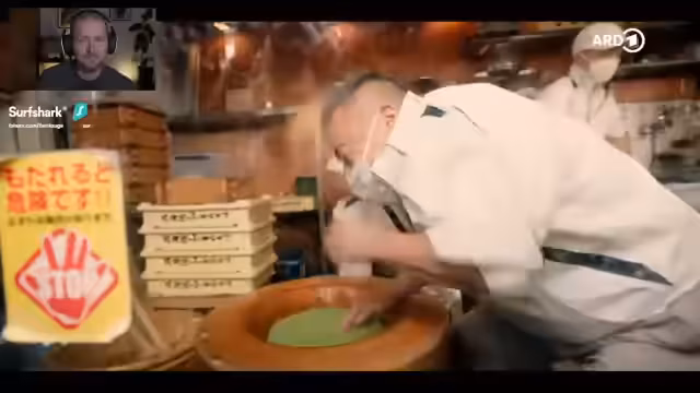 03:58:50Der Streamer nimmt an einer traditionellen japanischen Teezeremonie teil und erklärt die Bedeutung jedes einzelnen Handgriffs. Matcha, ein zu Pulver gemahlener grüner Tee, wird mit süßem Reiskräcker serviert. Die Utensilien werden hervorgehoben, darunter ein handgefertigter Teewasserkessel aus Gusseisen, der mehrere tausend Euro kosten kann. Die Regeln des Umgangs mit Teeschalen werden erklärt: Die schöne Seite wird zur Gastgeberin gedreht, damit diese sie bewundern kann.