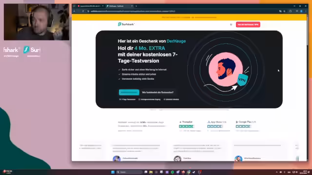 02:07:45Zu Beginn des Dokumentationsteils des Streams gibt es technische Schwierigkeiten mit dem Sound und der Musikpausierung-Funktion. Der Streamer berichtet von Problemen mit dem System, das stattdessen die Musik in den Overdrive schaltet. Nach einigen Einstellungsanpassungen wird dies behoben. Gleichzeitig wird der Sponsor Surfshark vorgestellt, der den Doku-Donnerstag unterstützt und eine kostenlose Testversion sowie zusätzliche Funktionen wie VPN und E-Mail-Schutz bietet.