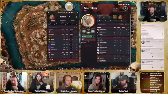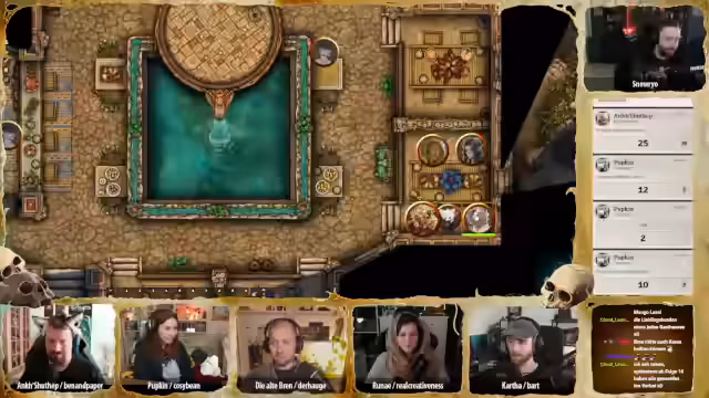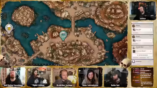 02:25:03Die Gruppe konzentriert sich auf die Suche nach den abgetrennten Käferköpfen und vermutet, dass Pip oder Phineas diese bei sich tragen. Brenn konfrontiert die beiden Kellner am Tresen und führt eine Einschüchterungsaktion durch. Nach einem Wurf mit einem Natural 20 für Brenn, was ihren Erfolg sichert, und einem Natural 1 für die Kellner, die damit angeschlagen wirken, geben diese vor, von nichts zu wissen. Die Kellner, zwei Halblinge und ein Mensch, behaupten, sie hätten nur ihre Säfte genossen. Eine externe Untersuchung der Küche oder anderer Hinweise führt vorerst zu keinem Ergebnis.