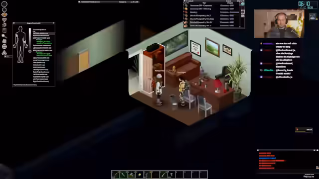 05:57:32Der Streamer widmet sich der Verbesserung seines Charakters, trainiert seine Fitness und verbessert seinen Fighting-Wert. Im Zuge dessen räumt er seinen Charakter-Bereich auf und erkundet neue Möglichkeiten, wie das Erlernen von Cooking zur Nahrungsversorgung beitragen kann. Zusätzlich wird die strategische Erweiterung der Basis besprochen, wobei eine Trennwand aus Holz errichtet werden soll, um den Schutz zu erhöhen und Platz für Lagergüter zu schaffen.