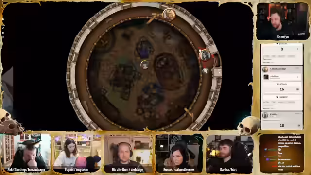00:20:09Der Stream beginnt mit Pen & Paper, die Session 'Deserts Doom' startet in wenigen Minuten. Der Streamer, der kurz davor von Magen-Darm-Beschwerden geplagt war, ist nun angeschlagen aber gamefit. Er erwähnt eine neue Brille, die er aus prophylaktischen Gründen tragen muss, da er aus Versehen falsch am Monitor saß und dadurch Verspannungen bekam. Dies führte zu einem Sehtest, der zeigte, dass seine Augenwerte gleich geblieben sind. Die Gruppenteilnehmer sind alle im Call anwesend und der Stream läuft technisch stabil weiter.