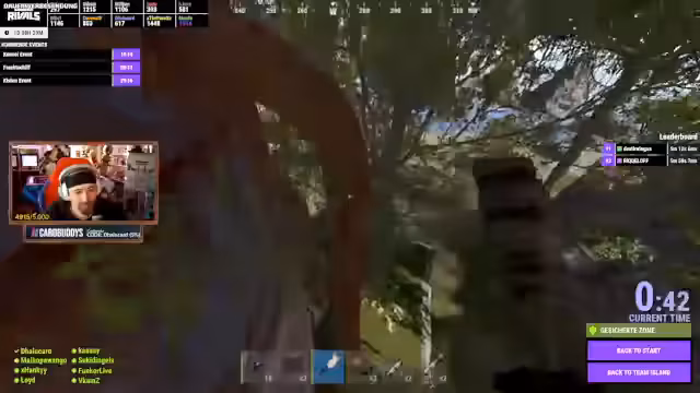 08:38:42Ein Event beginnt, bei dem Teams auf Plattformen springen müssen, um in einer Runde zu überleben. Der Verlauf des Events ist stark vom Zufall abhängig und hängt von der Latenz sowie der Fähigkeit ab, schnell zu reagieren. Das Team gewinnt die erste Runde gegen Fokus, was jedoch aufgrund eines vermeintlichen Fehlers bei der Zeitmessung zu einer hitzigen Diskussion führt.