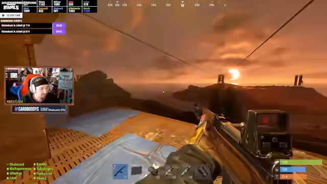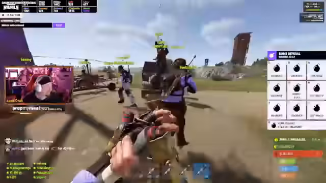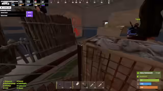06:04:57Der Angriff auf die Raidable Base beginnt chaotisch. Der Helikopter fliegt zu spät, und die Teammitglieder sind nicht allezeitig bereit. Beim Landen auf der Pyramide wird das Team von gegnerischen Spielern und Minis überrascht und mehrere Mitglieder werden ausgeschaltet. Es kommt zu einem hektischen Kampf, bei dem Wissenschafter getötet und der Loot gesichert werden muss, während das Team unter starkem Beschuss steht.
