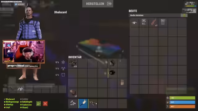 06:13:10Nach dem gescheiterten Raid-Plan und dem Verlust mehrerer Teammitglieder sucht das Team nach einer neuen Strategie. Ein Teil des Teams soll in einem Outpost campen, während ein anderer Spieler mit einem Hubschrauber Rucksäcke mit verbleibendem Loot abholen soll. Der Streamer analysiert die Situation und versucht, die verlorenen Ressourcen und die Moral des Teams wiederherzustellen, während er die verbleibenden Ausrüstungen und Munition verteilt.