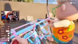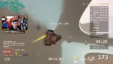 04:31:37Die Streamer navigieren durch eine virtuelle Umgebung mit einem unhandlichen Fahrzeug. Es kommt zu Fahrfehlern, wie einem plötzlichen Kentern des Bootes. Anschließend versuchen sie, verschiedene Hindernisse wie Container und Fässer zu umfahren. Die Steuerung des Fahrzeugs erfordert Konzentration und Abstimmung zwischen den Spielern.