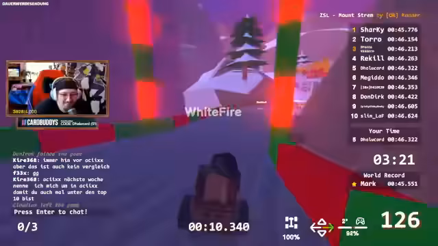 02:53:40Der Stream wechselt zu winterlichen Strecken mit Schnee und Eis, die zusätzliche Herausforderungen mit sich bringen. Spieler müssen mit rutschigeren Oberflächen umgehen und andere Fahrtechniken anwenden. Einige finden die Strecken faszinierend, während sie für andere extrem schwierig sind und zu vielen Abflügen führen.