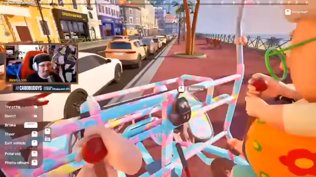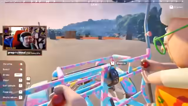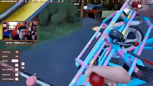 04:12:49Die Streamer erkunden die Umgebung im Spiel Zeepkist. Sie fahren durch eine kleine Stadt und interagieren mit verschiedenen Objekten. Es gibt auch eine Brücke mit fliegenden Fischen, die es zu überwinden gilt. Die Streamer experimentieren mit verschiedenen Wegen und Strategien, um das Ziel zu erreichen. Die Stimmung bleibt dabei trotz der technischen Herausforderungen gutgelaunt.