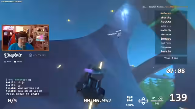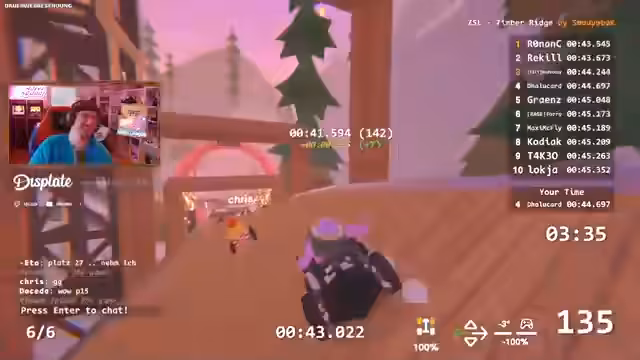00:29:02Während der Fahrt treten vermehrt technische Probleme auf. Streamer und andere Spieler verlieren Reife oder fliegen ungewollt aus der Strecke, was ihre Zeiten ruinieren. Streamer ist verärgert über einen 'Crash am Ziel' und einen 'Fehler im Ziel', der ihn daran hindert, die optimale Zeit zu erzielen. Er diskutiert mit der Community über mögliche Abkürzungen und Fehler in den Maps, wie Checkpoints, die die Runde vorzeitig beenden. Die 'Looping'-Strecke wird als besonders frustrierend empfunden, weil sie schwer zu meistern ist und oft zum Absturz führt.