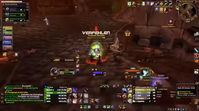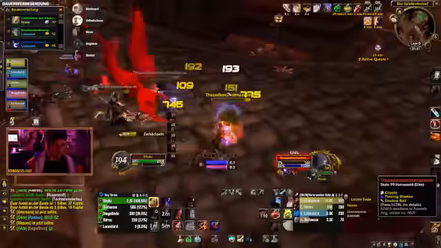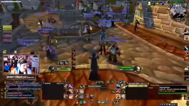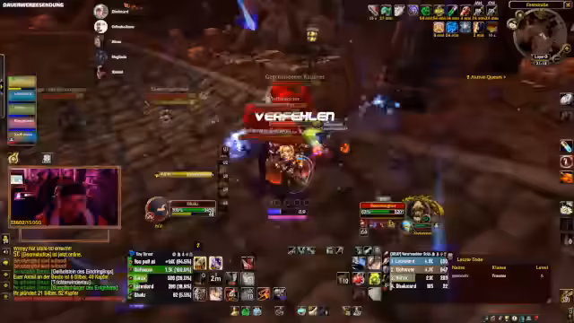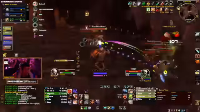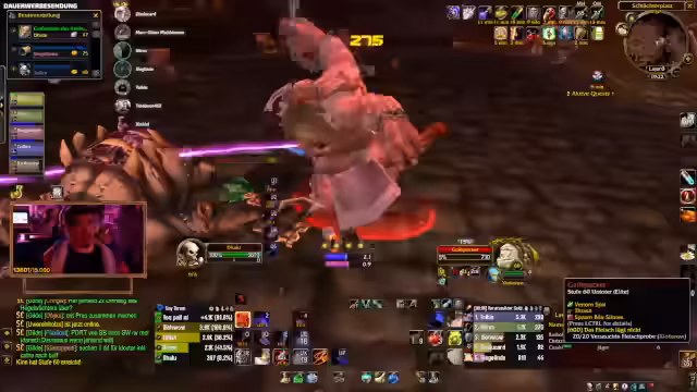 08:46:40Während eines besonders hektischen Pulls nimmt der Streamer die Rolle des Off-Tanks ein, um die Gruppe zu schützen. Er nutzt seine defensiven Fähigkeiten wie 'Schildwall' und 'Aure der Tapferkeit', um den Schaden auszugleichen und dem Heiler Zeit zu geben. Die Situation entwickelt sich zu einer Nahtoderfahrung, bei der der Tank nur knapp überlebt, was die Abstimmung und Kommunikation innerhalb der Gruppe unter Beweis stellt.