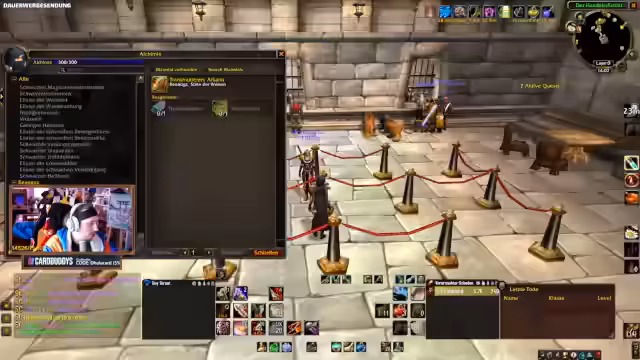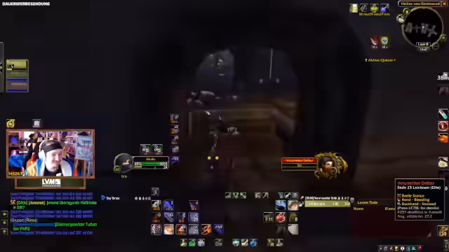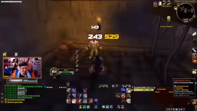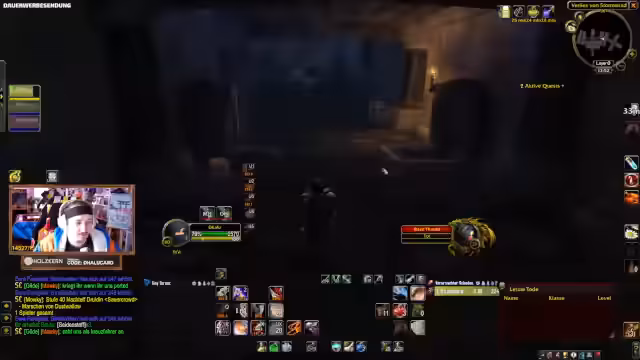 00:00:47Der Stream startet mit technischen Anpassungen wie der Anpassung der Lautstärke und dem Wechsel des Streamer-Modus im Discord. Der Streamer beginnt eine questbezogene Aktion in Blackrock Depths und sucht dabei nach einem bestimmten NPC und einer Schatücke, die einen wichtigen Gegenstand enthalten könnte. Gleichzeitig gibt es erste Interaktionen mit dem Chat über die Lautstärke und den Server-Chat.