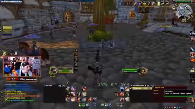 06:56:19Nach einem Ortswechsel nach Sturmwind, um Materialien zu tauschen, gibt es technische Hürden beim Einladen in die Gruppe. Der Streamer und der Wechsler einigen sich darauf, die Anwesenheit gegenseitig zu bestätigen, um den Spiel fortsetzen zu können. Es findet ein Waffenwechsel statt: vom Schwert zu Streitkolben, um einen Crusader-Enchant auf Waffen zu nutzen, was als ideales Setup für die aktuelle Gruppe gilt. Die Waffenausrüstung wird im Detail analysiert, um den Schaden zu optimieren.