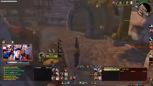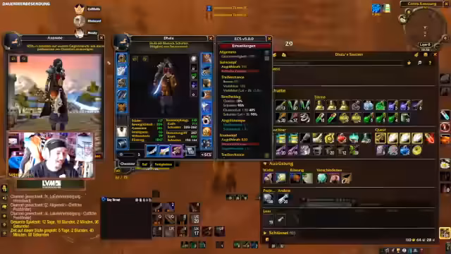 11:54:59Ein Gildenmitglied mit einem Jäger erhält Beratung zur Optimierung seines Gears. Der Streamer empfiehlt, Items mit 'des Affen' zu priorisieren, da Agilität der wichtigste Stat für Jäger ist. Es wird kritisch angemerkt, dass die aktuelle Ausrüstung dem Jäger zu wenig Ausdauer und HP gibt, was in gefährlichen Situationen problematisch sein könnte. Auch das Management von Gold und Ressourcen wird thematisiert, da ein Level-60-Jäger schnell Gold farmen kann.