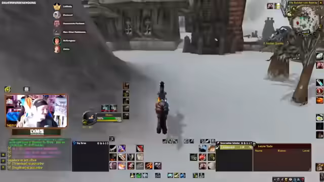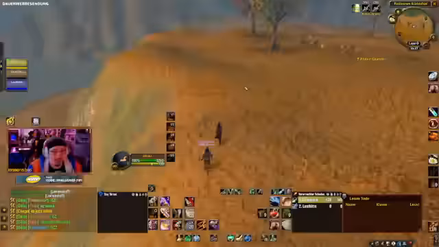 03:22:25Die Zusammenarbeit mit anderen Spielern bleibt ein zentraler Punkt. Der Streamer erkundert die Möglichkeiten von DMT (Deadmines) Solo, wobei die Regeln einhellig sind, dass keine Hilfe im Kampf erlaubt ist. Gleichzeitig werden Vorkehrungen getroffen, um das Kreuzfahrerrezept in der Gilde zu verteilen. Der Streamer zeigt sich kooperativ, indem er Luna Teile von seiner Ausrüstung schenkt, da sie ihr Charakter nicht mehr lange spielen wird.