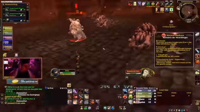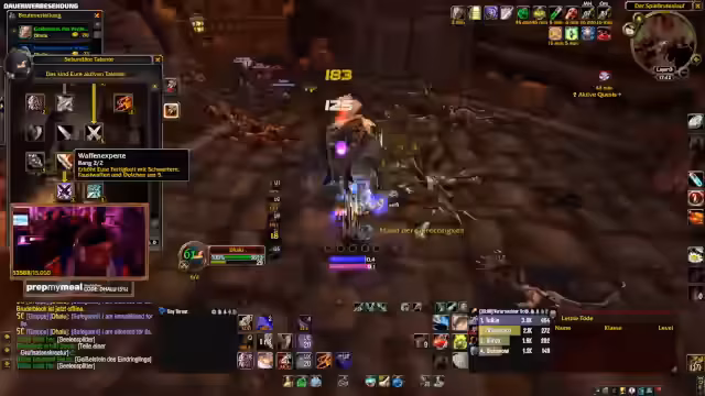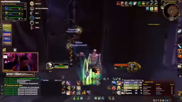 08:26:45Im Dungeon Loot-Gespräche über die Verteilung der Items, insbesondere um einen seltenen Zweihand-Tank-Boss. Einige Spieler wünschen sich den Gegenstand für den Flex, während andere ihn als wichtigen Verbesserungsschritt für ihre Rolle ansehen. Gleichzeitig bereitet sich die Gruppe auf einen anspruchsvollen Boss vor, der als 'nervig' beschrieben wird und bei dem die Stellung und Bewegung im Kampf zentral ist, um Debuffs und Fähigkeiten wie den Schattenblitz zu überstehen.