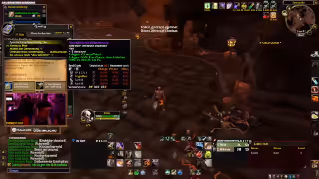 09:57:49Im Fokus des Streams steht ein Fortschritt in der Instanz LBRS (Lower Blackrock Spire). Die Gruppe beobachtet die Aggro-Verteilung der Bosse, insbesondere die des linken und rechten Feindes, und analysiert den Schaden und das Verhalten der Gegner. Es gibt Diskussionen über das plötzliche Erscheinen eines Schilds bei einem Boss und die hohe Schadensoutput der Ghul-Aggressoren. Der Streamer identifiziert kritische Pull-Probleme, insbesondere mit den Insektenmobs, welche die Gruppe zu vermeiden versucht.