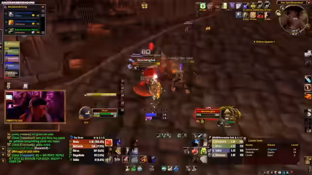 01:00:11Aufgrund der fehlenden Tank-Klasse wird die ursprüngliche Idee für den Durchzug von BRD zunächst verworfen. Stattdessen werden Pläne für einen Nord-Run in Düsterbruch geschmiedet, da ein Buch für die T0.5-Questreihe dort droppen kann. Die Diskussion offenbart, dass wichtige Spieler wie Henki und Harn oft ausfallen oder nur noch chilligere Dungeons spielen, was die Organisation erschwert.