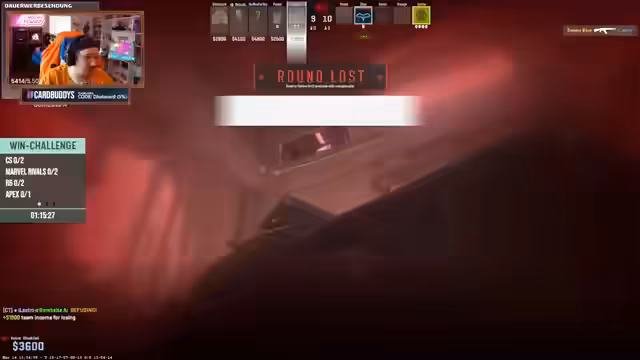 05:53:57Im Angesicht der hoffnungslosen Lage wird letztendlich ein B-Rush versucht, um eine letzte Chance auf den Sieg zu ergreifen. Dieser Angriff scheitert kläglich, da die Gegner durch ihre offensichtlichen Map-Informationen den Angriff leicht abwehren. Das Spiel endet mit einer deftigen Niederlage, was den Streamer in einen finalen frustrierten Zustand versetzt und den Stream beendet.