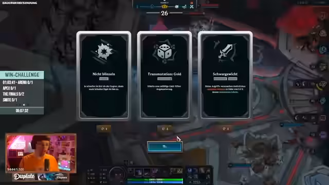 07:18:16Nach der anfänglichen Niederlage wird eine neue Strategie beschlossen: Karma und ein anderer Spieler erhalten den 'Bravery'-Augment, während die anderen freies Spiel haben. Trotz eines kritischen Fehlers beim Build eines Champions, der zu geringem Schaden führte, bleibt das Team zuversichtlich. Das neue Ziel ist es, einen sofortigen Impuls für einen Sieg zu nutzen und sofort zurück ins Spiel zu gehen.