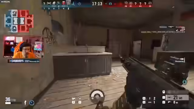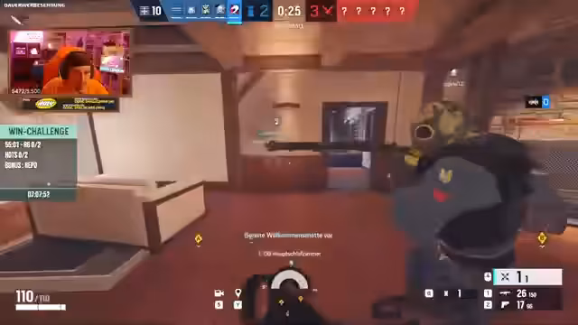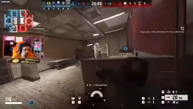 09:15:45Das Team beginnt in Rainbow Six Siege auf der Map Chalet. Die erste Runde wird gesichert, indem sie eine Bombe finden. Die Streamer analysieren die gegnerischen Picks und Strategien. Sie erkennen, dass die Gegner ein "Bandit"-Setup verwenden, um das Aufschweißen von Wänden zu verhindern. Es werden Versuche unternommen, die gegnerische Position aufzuklären und ihre Bewegungen zu antizipieren.