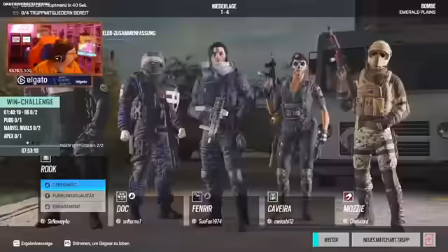 00:28:38Der Streamer geht wieder in Rainbow Six Siege und stellt fest, dass es sich um eine sogenannte Win-Challenge handelt, bei der es nur um 12 Stunden reines Spielen geht. Bei der Betrachtung der Match-Historie fällt auf, dass das Team Top 128 erreicht hat. Der Streamer stößt auf einen neuen Spielmodus namens Dual Front, in dem weniger Operator verfügbar sind, und äußert, dass er Bock auf Rainbow Six hat. In einem weiteren Match stellt er fest, dass eine laufende Runde und ein fehlender sechster Spieler die Teamdynamik und den Spielverlauf beeinträchtigen.