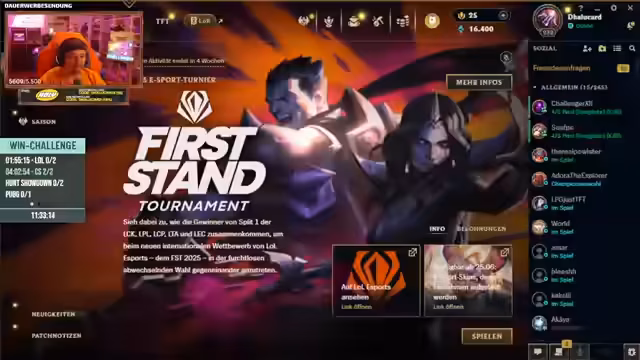 02:41:51Zu Beginn des Streams werden die Pläne für die 'Win Challenge' intensiv diskutiert. Der Streamer äußert Zweifel an den vorgeschlagenen Spielen wie CS, Valorant und Rainbow Six Siege, da er Valorant nicht installiert hat und der Genre-Mix zu Shooter-lastig erscheint. Stattdessen schlägt er vor, mit League of Legends zu beginnen oder eine Liste von Trio-Spielen wie Apex Legends und Hunt: Showdown zu berücksichtigen. Die Teilnehmer einigten sich schließlich auf eine Liste mit Counter-Strike 2, League of Legends, Hunt: Showdown und weiteren Titeln, wobei ein Fokus auf realistische Spielzeiten und erreichbare Wins gelegt wird, um die 12-Stunden-Challenge zu schaffen.