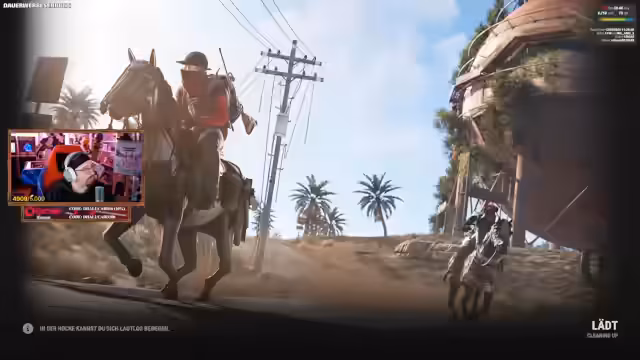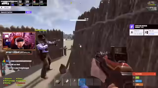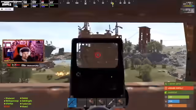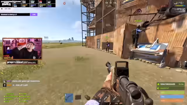 06:20:33Der Fokus wieder ganz auf Rust. Die Spieler verwickeln sich in einen chaotischen PvP-Konflikt mit dem Team Wellin und anderen Gegnern. Die Kommunikation ist unkoordiniert, was zu Friendly Fire und Missverständnissen führt. Während die Spieler in einen Kampf um die Bombe involviert sind, versuchen sie, gegnerische Spieler auszumanövrieren und zu eliminieren. Gleichzeitig herrscht Verwirrung über den Spielstand und die verbleibende Zeit, was zu einer angespannten und hektischen Stimmung führt.